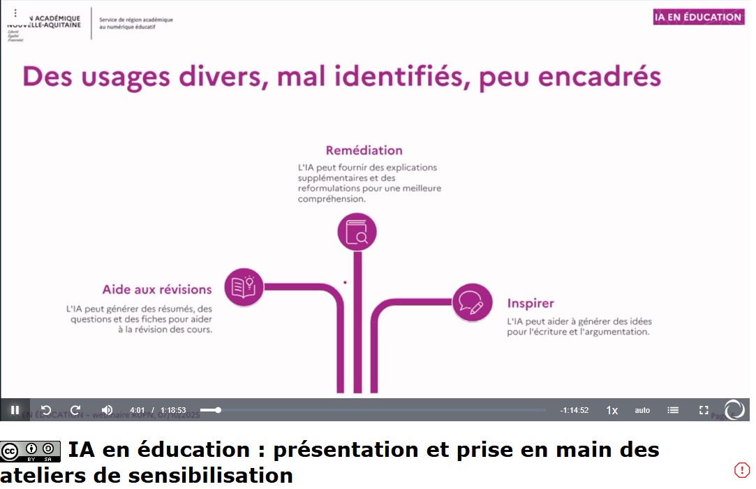 L'actualité du numérique dans la Région académique Nouvelle-Aquitaine : vademecum numérique raisonné, Eléa, cybermois, Pix parentalité, certifications élèves, nouveautés Apps.education, MIA, IA génératives, mission impact numérique, scénario enseignement et enquête usages de l'IA.