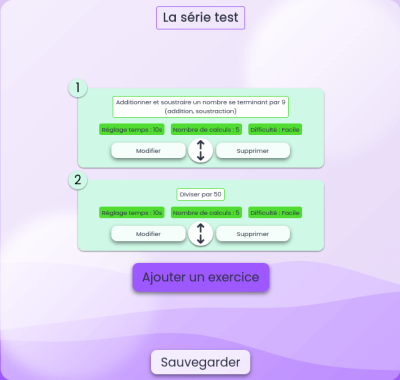 L’enseignant crée ensuite une série au moins. Les séries sont les parcours d’exercices, en créer consiste à ajouter et à organiser les exercices :
