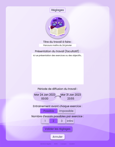 La création d’un travail passe par le choix de la série et l’ajout éventuel de l’activité Calcul mental de la mort » :